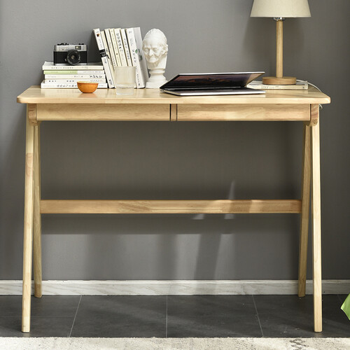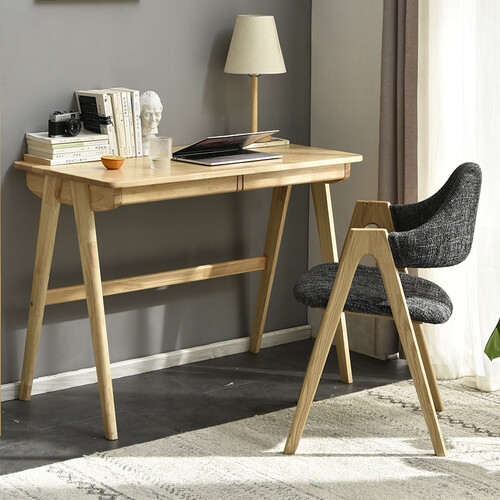 桌前带有挡板,挡板上有插孔,可以放笔,方便随时使用。桌腿进行了加粗,搭配八字形的设计,承重性更强。