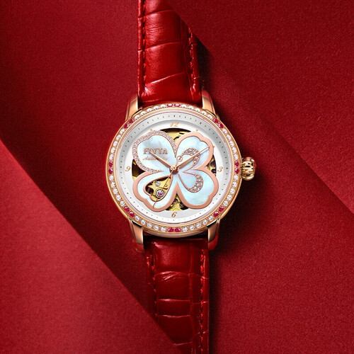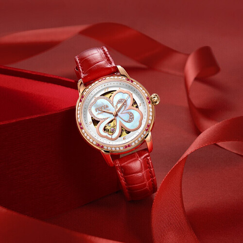 手表表带采用耀眼的中国红,不仅魅力十足,而且非常修饰肤色。表盘内部四叶草设计,让手表看起来活力十足,同时带来美好的寓意。