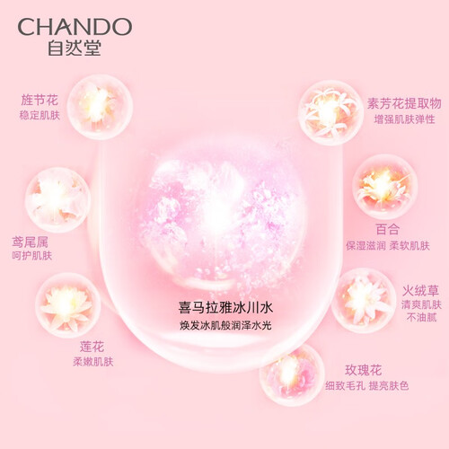 蕴含喜马拉雅冰川水成分,还有7大白花精粹,使肌肤白皙而且焕发光泽。同时加入了百合以及素芳花提取物,增强肌肤弹性。