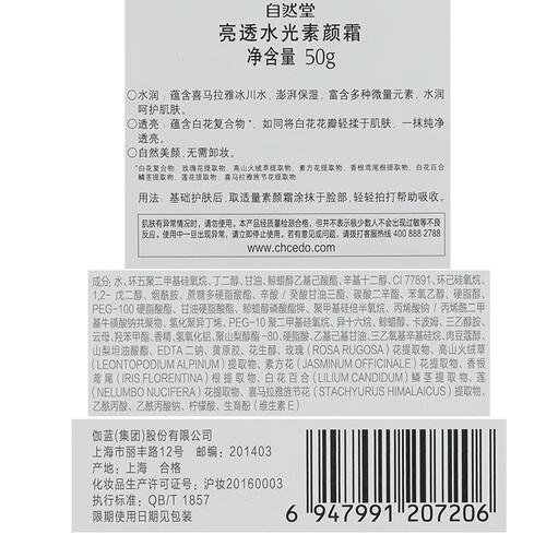 自然堂 亮透水光素颜面霜