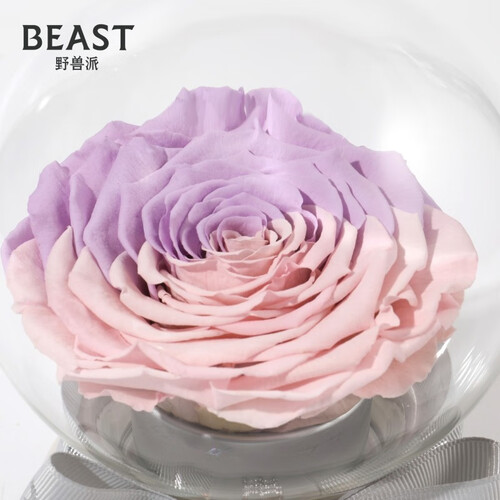采用蓝色烫金礼盒包装,华贵大气,精致美观。罕见粉紫双色永生玫瑰,值得送给珍贵爱人。添加蝴蝶结装饰,甜美精致。