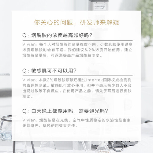 针对亚洲偏黄肤质,内含2%的烟酰胺,日日坚持改善肤色不均,提升整体色泽,以成分打动肌肤,恢复肌肤细腻晶透。