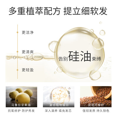 蕴含马鲁拉坚果油与多种植物精华,深入修复干枯发丝,轻松解决头发扁塌细软的困扰并持久护色固色,赋予头发蓬松活力,秀发亮泽。