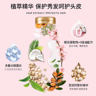 新鲜萃取日本初樱精华,花香四溢且能平衡头皮油脂,赋活毛囊,营养发根。0硅油温和配方,使头皮清爽不油腻。