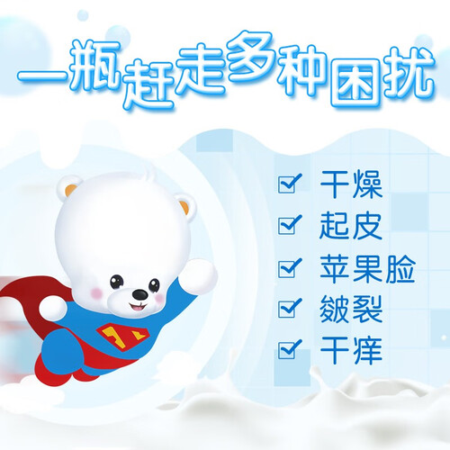 蕴含透明质酸钠和乳木果油成分,有助于舒缓面部皮肤泛红、粗糙、干裂等不适现象,帮助保障皮肤屏障功能,呵护宝宝娇能肌肤。