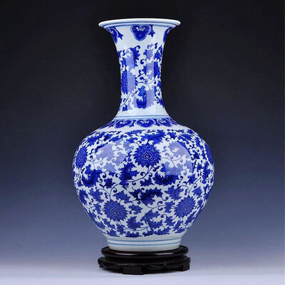 花瓶外形俊秀,线条清晰柔美,造型古雅端庄,采用青花瓷工艺,具有着色力强、色泽鲜艳的特点,适合现代的家居风格。