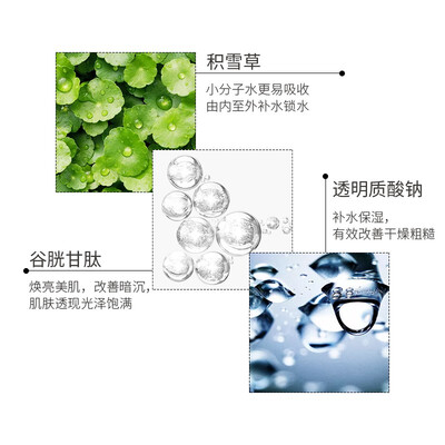 透明质酸钠成分,能给皮肤深层次补充水分,让皮肤保湿性增加,有弹性。同时改善皮肤发黄暗沉没有光泽度,焕发亮度光彩。