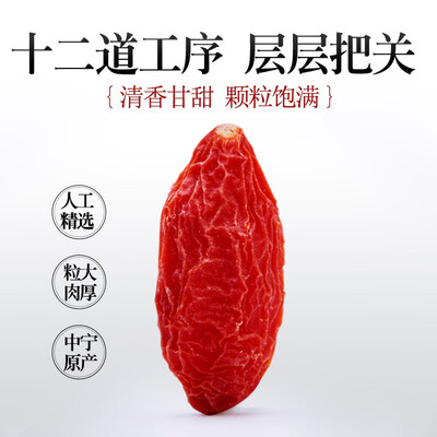 源自宁夏中宁,枸杞果肉饱满,营养含量丰富,获得道地药材认证,品质上佳。自封条包装,方便二次保存。