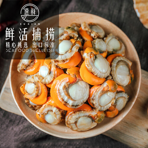 选择天然海域进行鲜活捕捞技术,带来了黄多肉厚的深海美味。人工进行精挑细选,能够锁住扇贝的鲜美,营养不会流失。