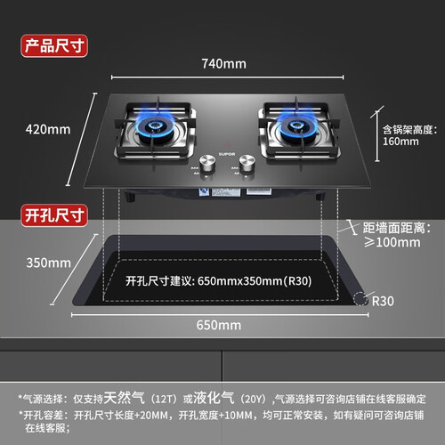这款燃气灶拥有双重保护系统,更加的安全可靠,让您使用的更加放心。搭配大火力设计,让您的爆炒进行的更加的顺利。