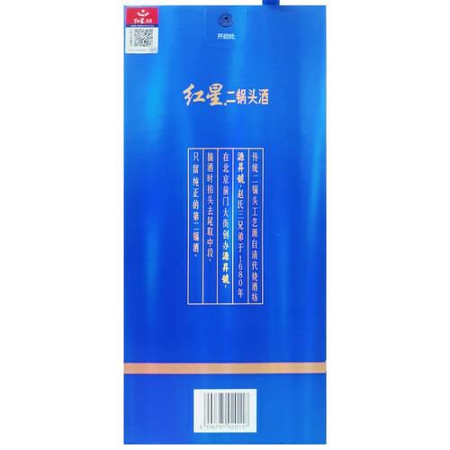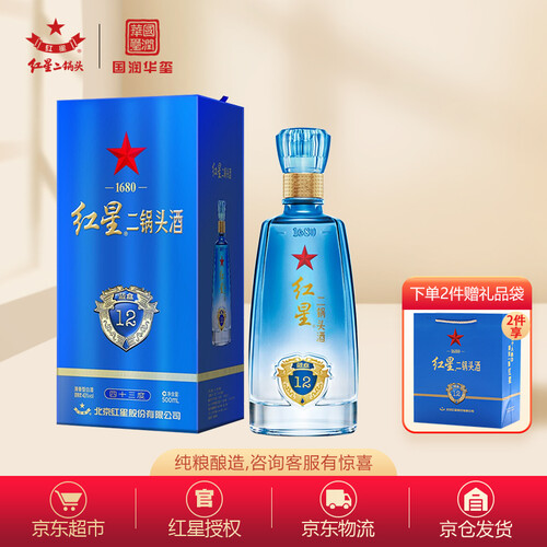43°的红星蓝瓶选用大麦、高粱、豌豆作为原料,通过多重古法工序带来精心酿制的二锅头,香气清雅又回味悠长。