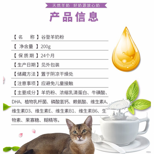 益生菌可以有效保护肠道,促进肠道吸收消化,提升猫咪免疫力。全面吸收母乳化,亲体配方,易于宠物吸收其中养分。