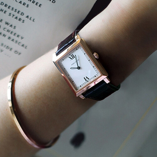 方形表盘线条简单利落,独特棱角尽显女性魅力。采用加粗的罗马数字刻度,彰显复古时尚的美感。
