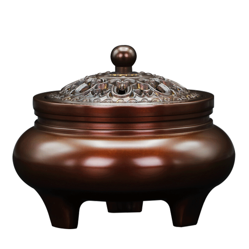 黄铜打造,材质十分细腻,炉壁厚实坚固,摸起来犹如丝绸般滑顺,香炉外表光亮圆润,而内部同样色泽亮丽,透着朴素自然的气息。