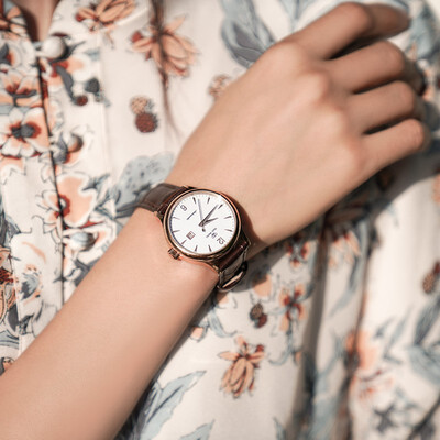 大气简约的表盘,金属字钉点缀带来耀眼光芒,让你佩戴低调而不失内涵,尽显知性优雅的气质。