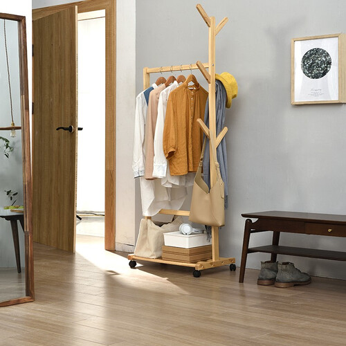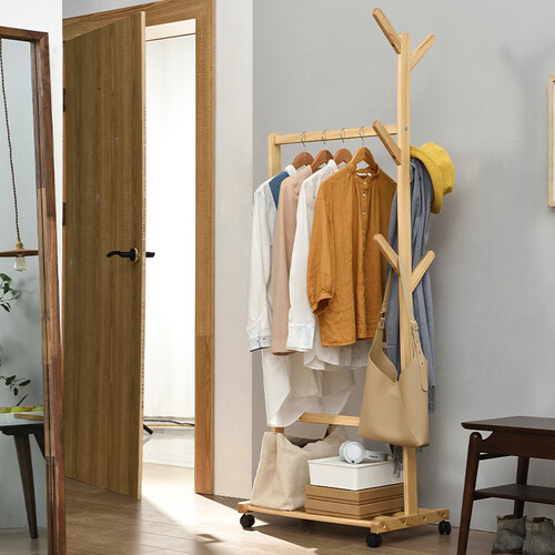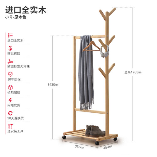 树杈设计的45度斜角挂头设计,可使挂放衣物更牢靠,不易掉落。采用国标检验的环保油漆,甲醛含量低长久使用不会危害身体健康。