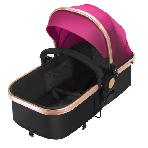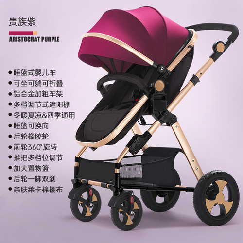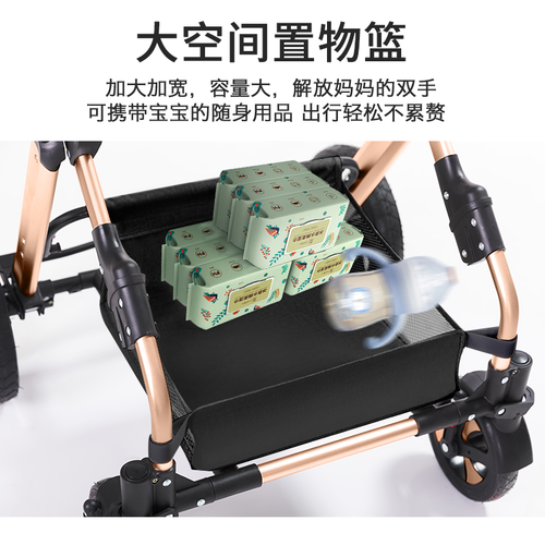 多功能豪华高景观婴儿推车,前轮双弹簧避震,后轮加宽胎面,平稳安全,保护宝宝不受颠簸,加宽睡篮调节扣,躺睡更舒服。