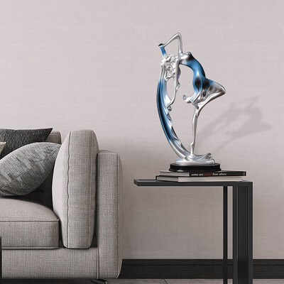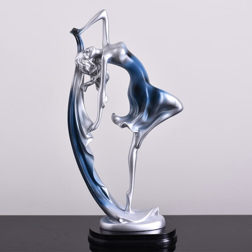 整体颜色以蓝色为主,造型为一位翩翩起舞的少女,整体线条流畅,生动又形象;采用树脂材质,无甲醛,无异味。