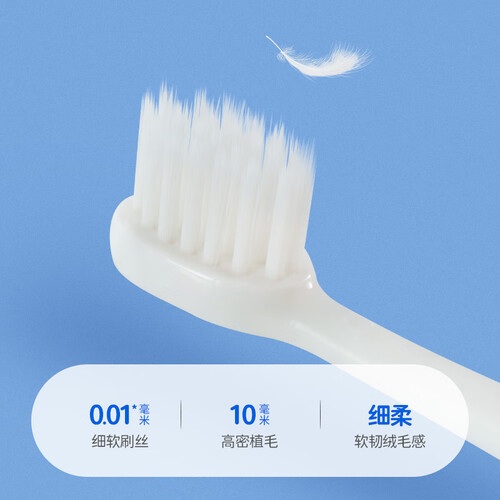 采用0.1mm的微纤软毛,触感轻柔,如羽毛般舒适。搭配流线型软胶刷柄,小朋友能轻松拿握,刷牙亦会更有耐心。