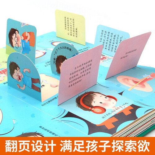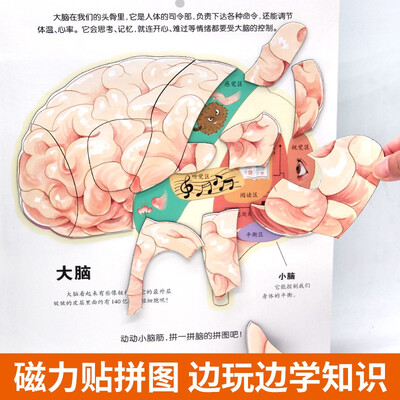 采用磁力贴拼图的设计,可以反复粘贴增加孩子的记忆能力,同时还设计了翻页,能够满足孩子对人体知识的好奇心。
