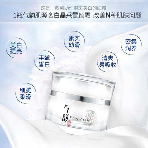 气韵肌源美白系列,晶采雪颜霜,让肌肤焕活透亮。蕴含草本提取物,温和滋养肌肤,增加肌肤活力。