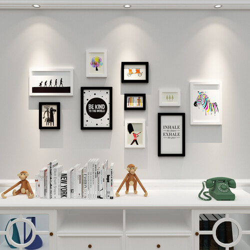 照片墙精选优质实木,采用先进工艺加工而成,清新自然又质朴,典雅时尚又耐用。选用优质五金方便照片更换,实用又经久耐用。