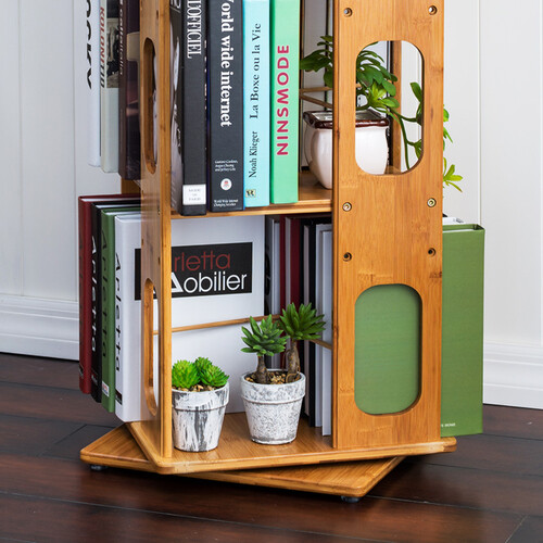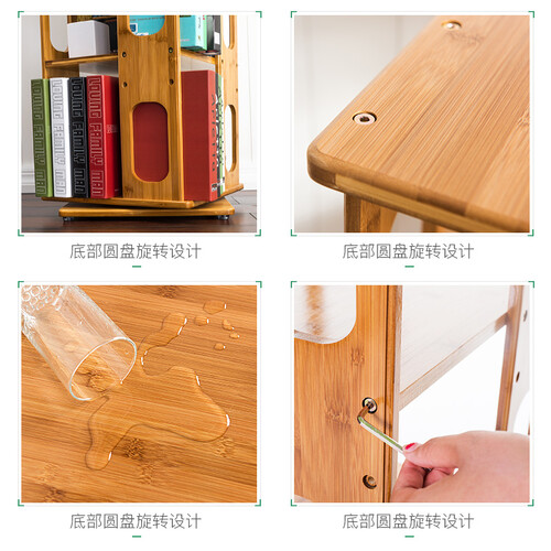 书架表面采用清漆处理,干净整洁。匠心制作品质保障,工艺精湛安全设计。底部采用旋转设计,物品拿取更为方便。