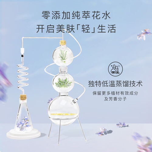 由芳香植物蒸馏所得的饱和水溶液,内含有微量的精油、植物珍贵水溶性分子等多种天然护肤成分,实现多方位的养护。