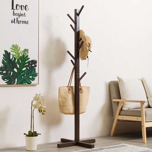 采用深咖啡色设计,经典不简单,衬出复古气息。选用树枝造型制作,提升支撑效果,扩大收纳空间。