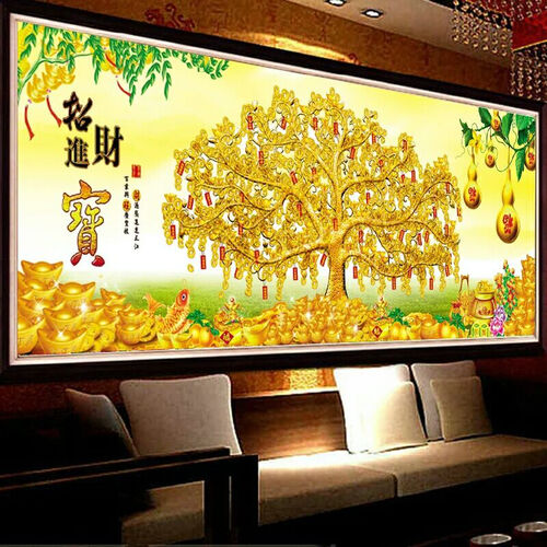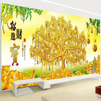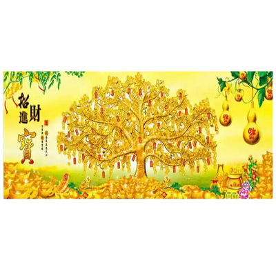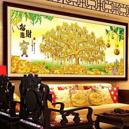 十字绣含有金色摇钱树,蕴含财富滚滚,金色线条的设计,使整体更加高端大气。