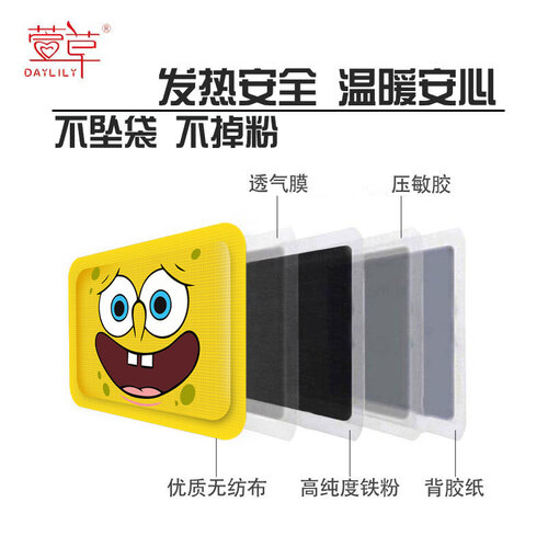 此款选用优质原料,内部含铁量高,发热时间更长;采用海绵宝宝卡通造型设计,萌趣可爱,带来不一样的使用体验。