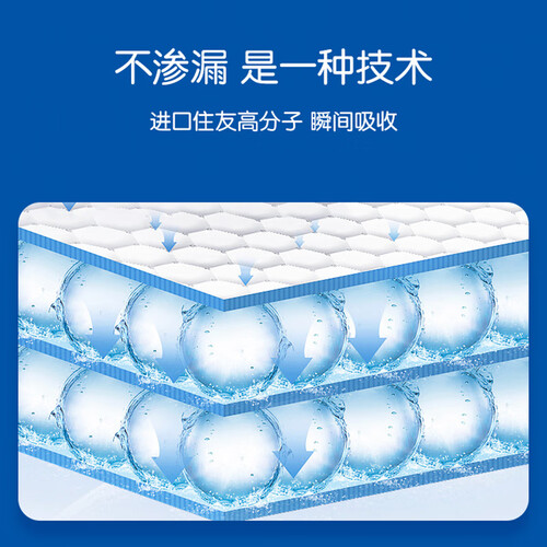 含有进口高分子材质,多边形可快速吸收液体,远离红屁屁。采用吸水珠珠与纸浆混合工艺,能大量吸收尿液。