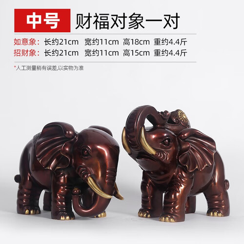 铜欣祥 纯铜风水大象办公室摆件