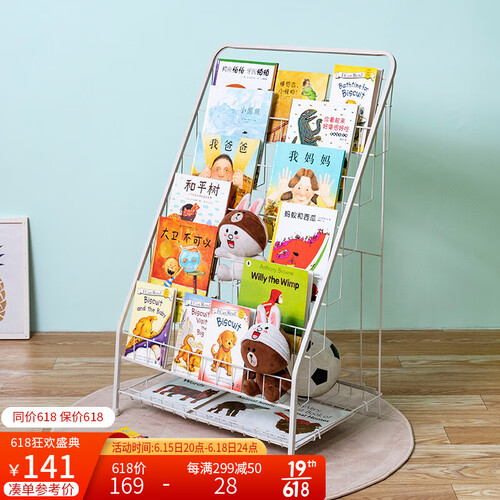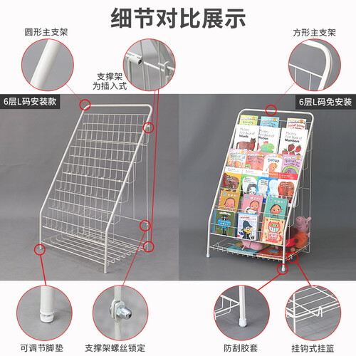 采用聚酯粉末涂层钢管支架,稳固使用。可放置更多儿童绘本,层次摆放一目了然。环保烤漆铁线,有效保护书籍掉落。
