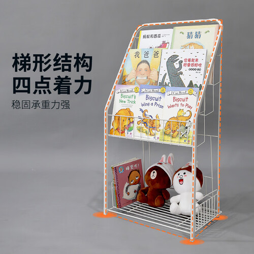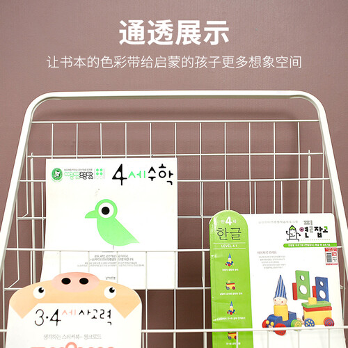 无磷环保静电喷粉表面涂层,自动化喷粉加人工上色,富有质感;通透无遮挡设计,充分展示绘本封面,吸引孩子目光。
