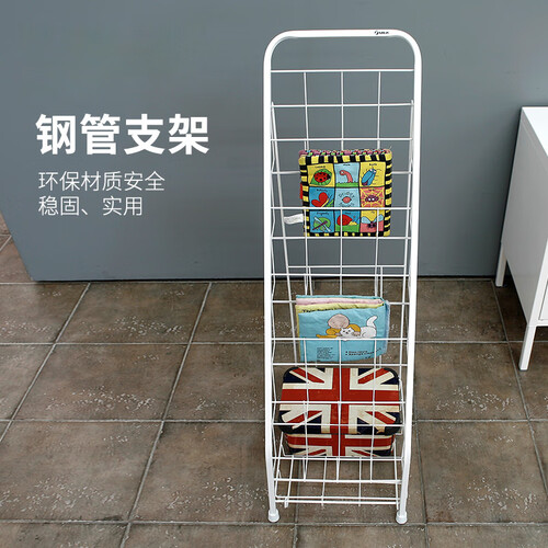 书架底部采用橡胶脚套设计,有效防止刮花地板;采用钢管烤漆工艺,经过防锈处理,镂空栏杆设计,不会遮挡书籍。