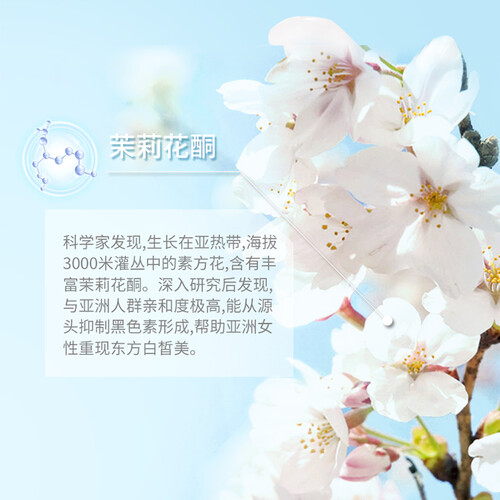 洁面乳泡沫丰富细腻,升级清洁的品质,有效洗去暗沉肤色。蕴含茉莉花酮,源自天然的力量呵护,有效焕白肤色。