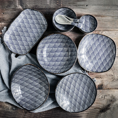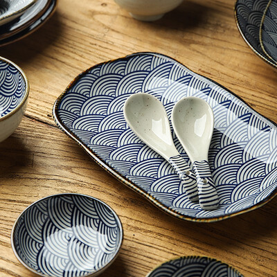 采用日式浮世绘风格设计,尽显复古风范,轻松彰显精致居家格调。海浪纹理清晰自然,可提升餐具的精致感。