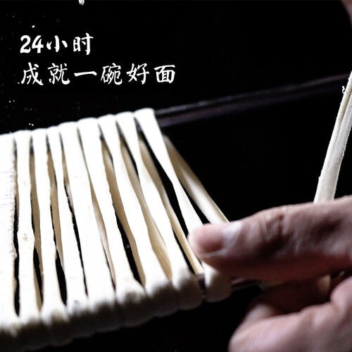 面条在制作过程中采用自然的发酵,没有使用任何添加物,品质安全放心。面条粗细不均,这是手工制作最好的见证。