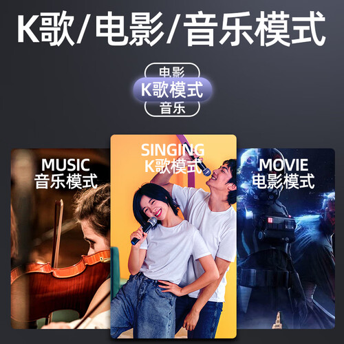 搭载无线K歌功能,在家就能唱歌,让家庭聚会更欢乐尽兴。内置6个全频单元,带来环绕立体声,使得观影更立体有氛围。