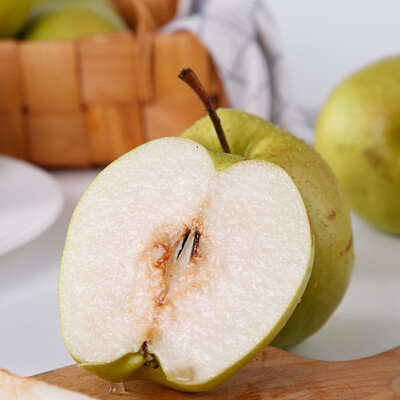 表面光洁细腻,阳面有着红色状条纹,果皮薄但果肉却十分酥脆,吃起来香甜爽口。蕴含丰富营养,如有机酸、微量元素等,即洗即吃。