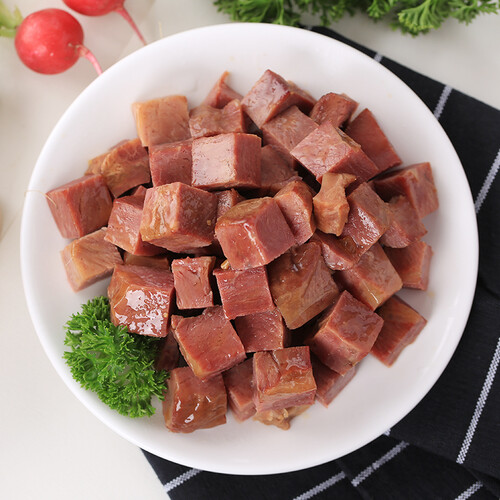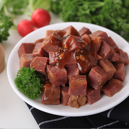 细选科尔沁自然草饲牦牛肉,经过一次整修改刀,大火蒸熟后低温慢煮一个半小时。尽可能的保留更多营养,让牛肉味道更佳鲜美细腻。