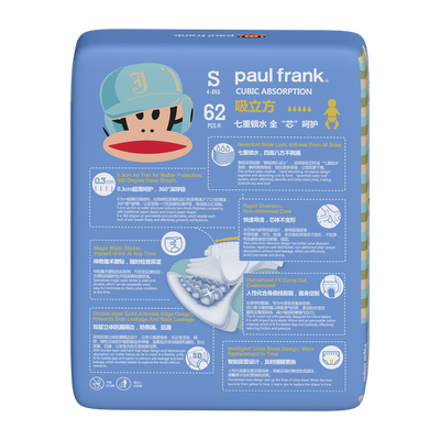 日本进口高分子芯体,快速吸收牢牢锁住尿液,保持时刻干爽不潮闷。表层设有上万个呼吸孔,长达12小时不反渗,减少宝宝哭闹。