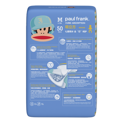 采用超长全芯体结构,大吸收量,且不断层不回渗,干爽舒适,不用担心红屁屁。弹力环抱式腰围,温柔又紧密贴身,不勒宝宝肚肚。