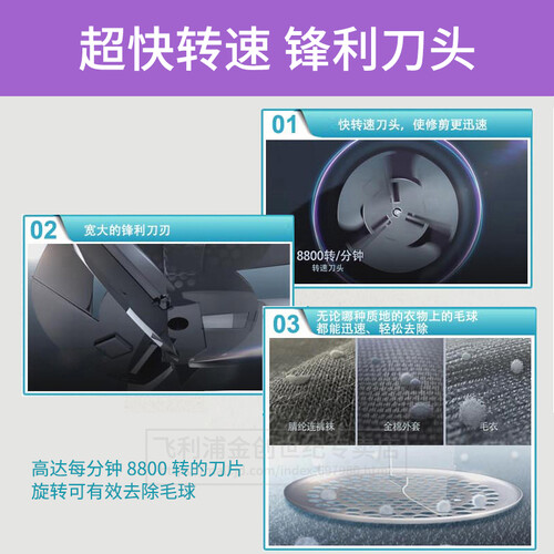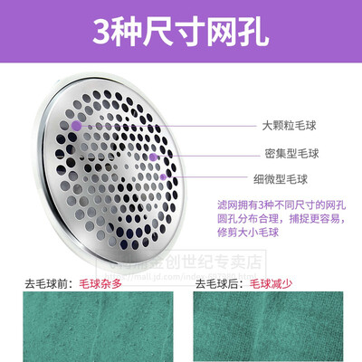 刀片每分钟旋转高达8800转,能够快速带走毛球,让衣物焕然一新。拥有三种尺寸的网孔,大小毛球一网打尽。