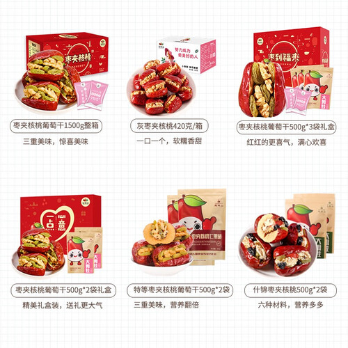 酥软松脆的枣夹核桃仁葡萄干,酸、甜、脆三味合一,超级美味。营养价值较高,每天一颗,让你享受智慧生活,下午茶必备。