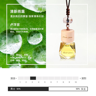 水晶装饰的外壳,晶莹剔透,更显精美大气,细节之处突出匠心工艺。清新淡雅的味道可遮盖车内异味,能营造出更温馨的氛围。