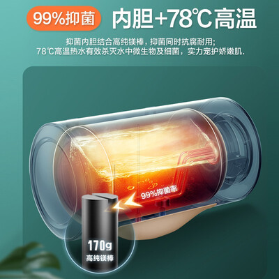 下潜式加长加热管,增加了热水管与水的接触面积,加热速度更快。拥有防电墙、防高压和漏电断电等8重安全防护,可放心沐浴。