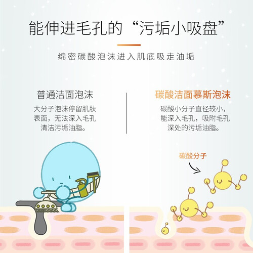 光有绵密泡沫还不够,植观加入碳酸成分,深入肌肤释放二氧化碳促进废物输出,氨基酸加持锁住肌肤水分,让肌肤干净透亮。