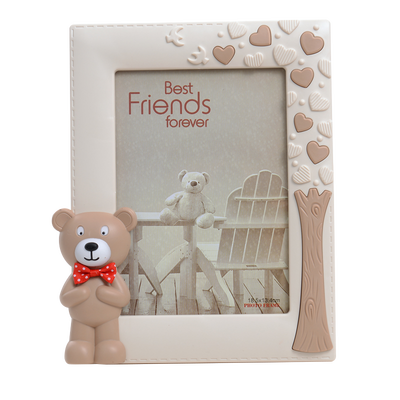 有小熊装饰的相框风格可爱,独具设计感。同时材质坚实稳固,可长久使用。不但可摆台,也可挂墙使用,使用更灵活。